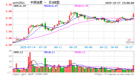 中顺洁柔 sz002511 加自选