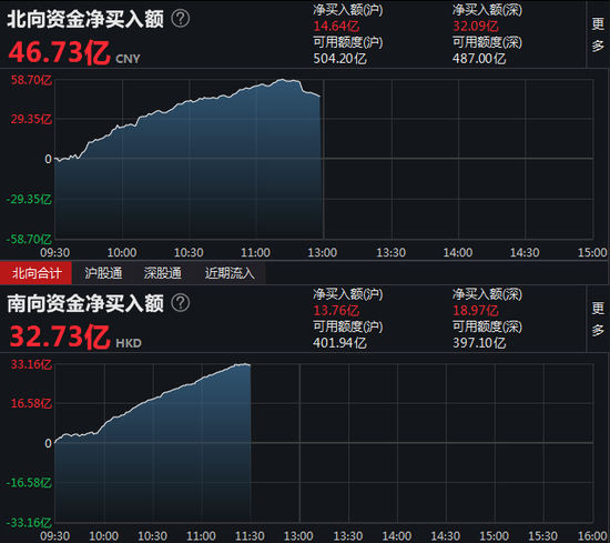 4月26日消息,截至沪深股市午间收盘,北向资金净买入46.73亿元,沪股通净买入14.64亿元,深股通净买入32.09亿元。