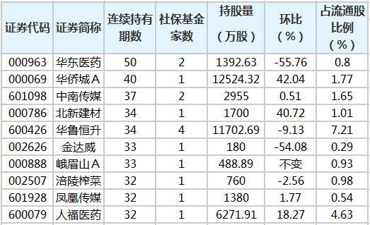 原标题:社保基金连续4个季度以上持有234股 最长已持有50个季度