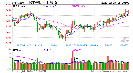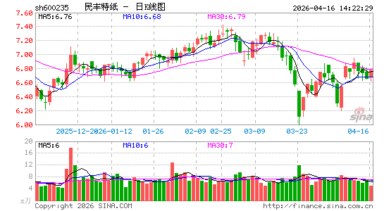 民丰特纸 sh600235 加自选