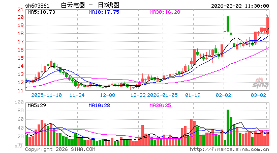 白云电器 sh603861 加自选