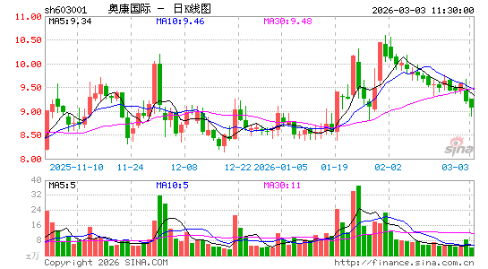 奥康国际 sh603001 加自选