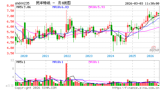 民丰特纸 sh600235 加自选
