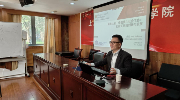 (圣路易斯华盛顿大学黄进教授在中心做“金融社会工作”专题讲座)