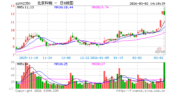 北京科锐 sz002350 加自选