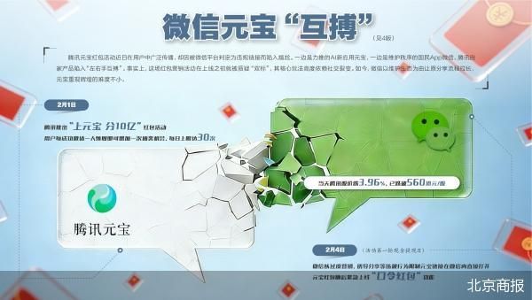 北京商报记者体验发现,微信出手后,元宝改为复制口令至微信的分享方式。事实上,这场红包营销活动在上线之初就被质疑“双标”,其核心玩法高度依赖社交裂变:用户每成功邀请一人领取红包,即可多一次抽奖机会。在不久前的员工大会上,腾讯公司董事会主席兼首席执行官马化腾更是期待靠这场活动“重现11年前的微信红包时刻”。如今,微信以维护生态为由让原分享流程拉长,元宝重现辉煌的难度不小。